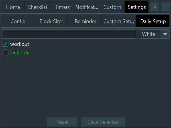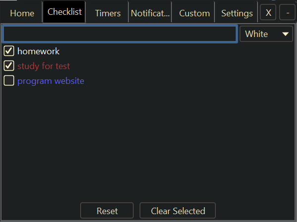 Productivity is a project I designed to help me with task organization and time management. It originally started as just a checklist to help visualize tasks. Over the development period, it has grown into so much more. With suggestions from friends and feedback from beta testers, I believe that it has become a useful time-management tool.